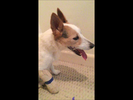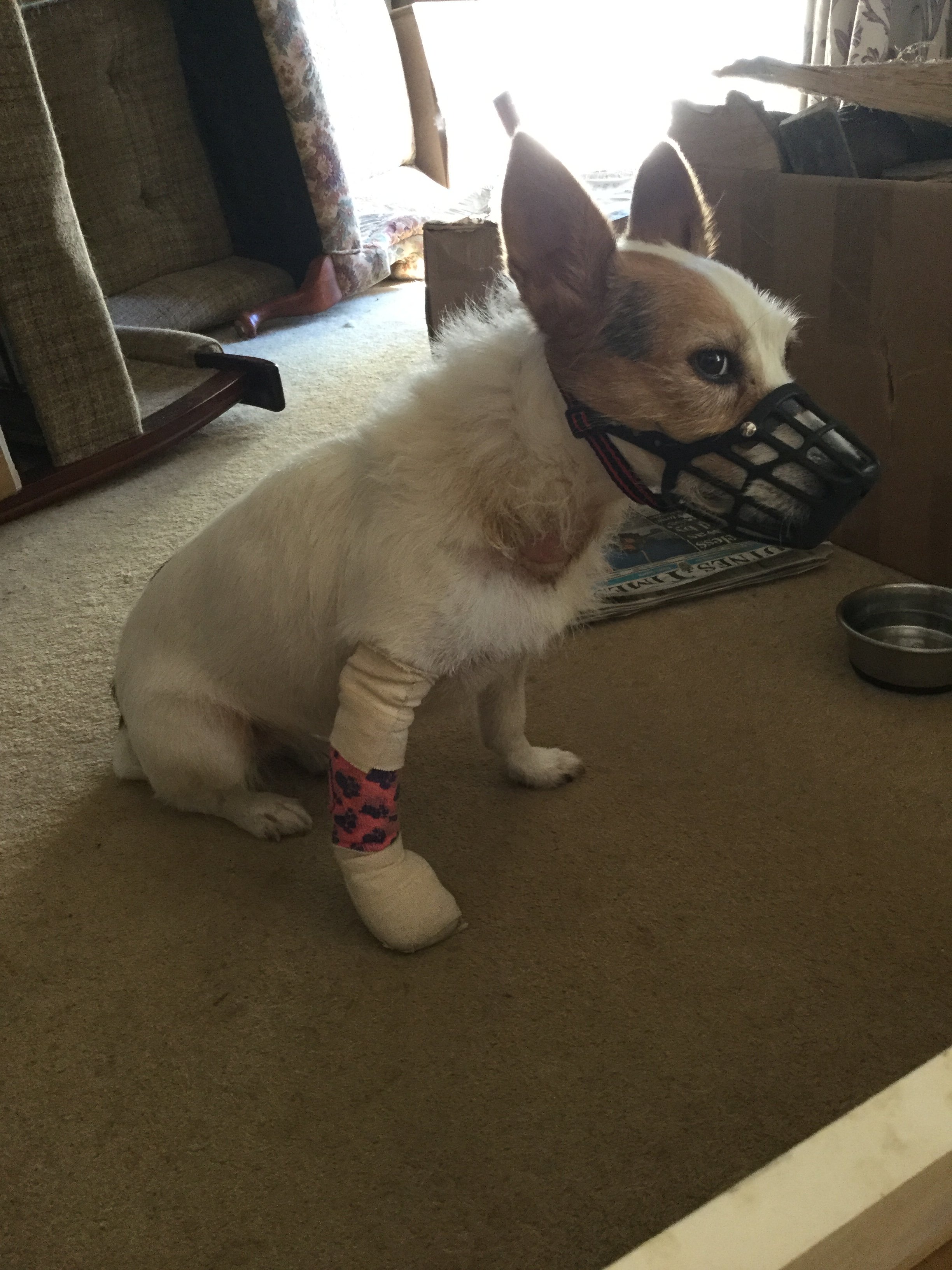 | 19:15 Bandage came off whilst Kimmy was on my lap. Was then confined to cage with cone collar on. | ||