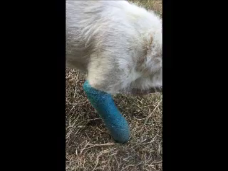 | 10:40 Seventh bandage was applied. Second set of x-rays were taken. V Goss and Mike applied the bandage. No Torbugesic pain control was given. Bandage came off travelling back in car. 14:30 Eighth bandage was applied. C Bashford and Mike applied the bandage. No Torbugesic pain control was given. | ||