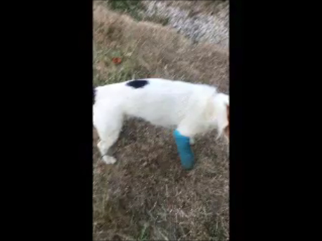 | In afternoon scratch wounds to neck and leg were discovered. Seymoor Vets (H Peplow) finally removed the bandage. | ||